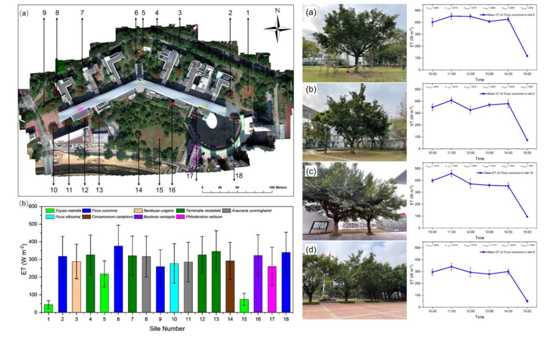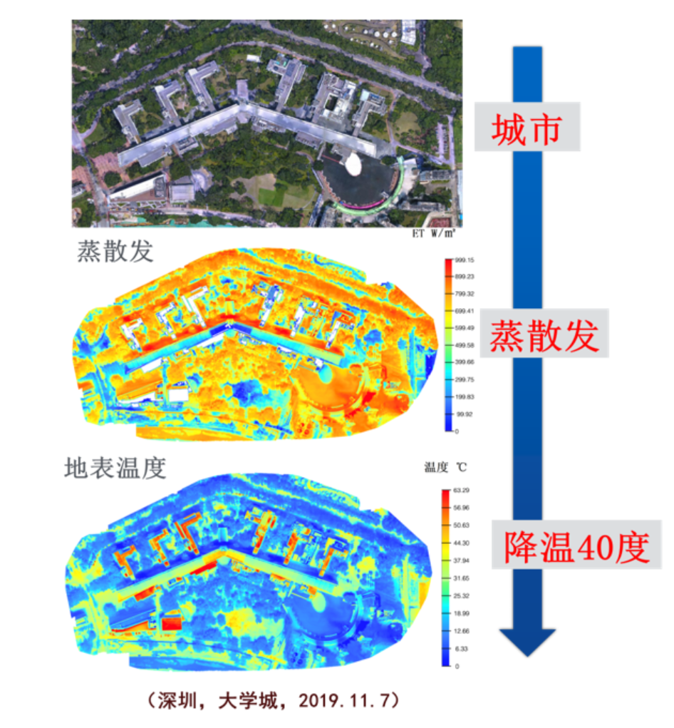 Figure 1 Distribution of evapotranspiration and surface temperature in urban areas (Peking University Shenzhen Campus)