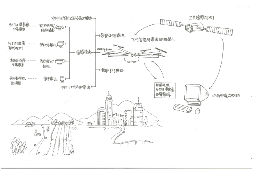 The flying intelligent environmental monitoring robot, developed by the laboratory after over 10 years of research, integrates theoretical algorithms, multi-source sensors, big data, and unmanned aerial vehicles (UAVs), and has already obtained 11 intellectual property rights. Unlike drones that only take photos, this product is a new generation flying robot with eyes, a brain, and a soul, driven by our innovative theoretical algorithms. The product is expected to significantly replace human labor in many industries and fields, becoming a norm in society and workplaces.