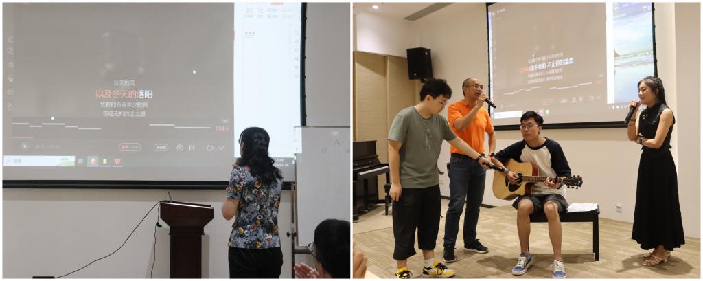 (许楠老师演唱《光阴的故事》;徐期勇老师和22届毕业生孙然、鲍琪演唱《成都》)
