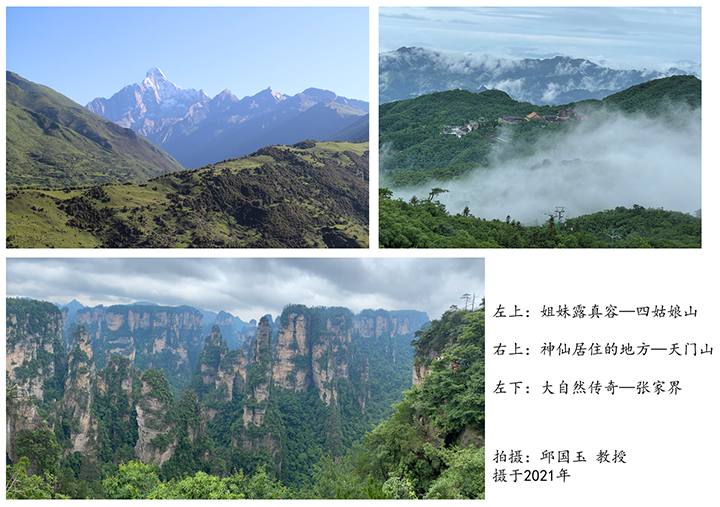最后,本次论坛还举行了别具特色的十大精选照片评选活动。该活动是邱国玉研究室每年的传统活动,在老师们和员工们的支持和赞助下,该活动举办至今,已历13载。为了让同学们在专心钻研学术的同时能够捕捉到生活的美好,邱教授分享了2021年他拍摄的十大精选照片。这些照片都是邱教授在忙碌的学术间隙用心记录的,每一张精美的照片背后都有不一样的故事,有“父亲的草原,母亲的河——黄河上游”,有“俏也不争春,只把春来报——梅关古道”……最后,经过现场师生们的热情比较,评选出了今年的三张人气最高的照片,即四姑娘山、张家界以及天门山。