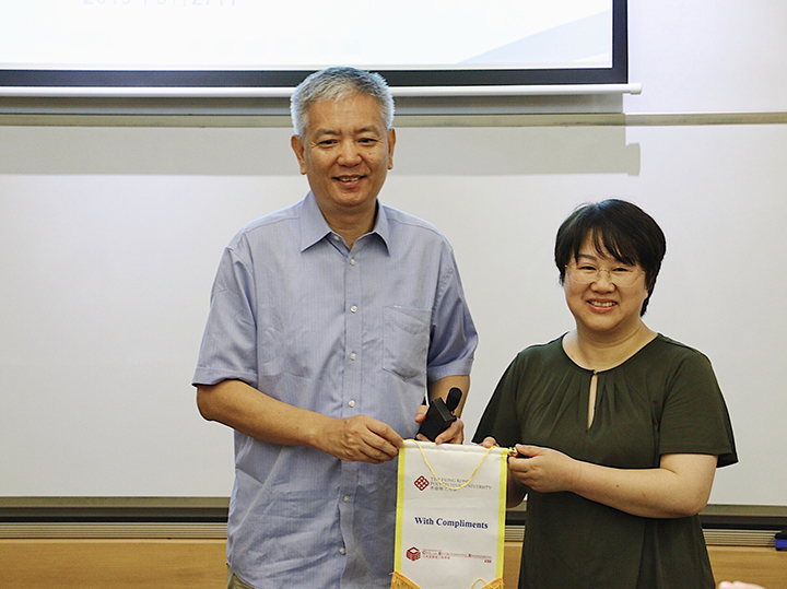接下来王韬老师表示此次讨论会是非常好的交流机会,可以加强大气气溶胶研究领域相关项目和研究人员间的合作,共同谋求合作和发展。王韬老师赠予研讨会香港理工大学的“With Compliments”锦旗,以纪念此次研讨会。