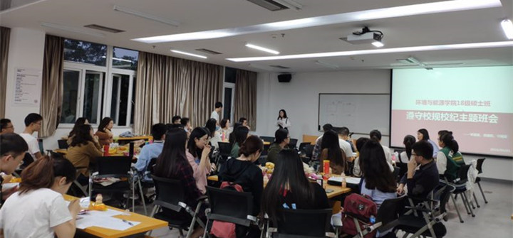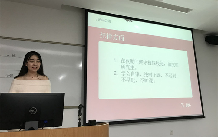 班会伊始,主持人林芳介绍了与会嘉宾,并为大家讲解了此次班会的开展意义及简要流程。随后,邵明帅、罗黎、朱媛和李海波4人带领同学学习校纪校规。邵明帅以2017年8月底清华大学对11名违纪研究生处分公告为例,通过深入剖析其中的四个案例,为大家讲解了违反校规校纪的一般处分。罗黎以我国首个因涉嫌论文抄袭导致博士学位被撤销的行政诉讼案件“于艳茹案”为切入点,结合近期高校发生的四起学术不端案例,从学术道德层面让同学们理解“扣好人生第一粒扣子”对于研究生学习的重要性。朱媛为大家宣讲了草拟的班级公约,并与大家进行了相关修订意见的讨论,最终确立通过班级公约。该部分学习的最后,李海波带领大家进行了评奖评优规则的学习,并逐条与大家讨论,征求修改意见。