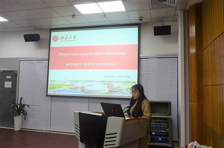 williamhill官方网站的林芳同学汇报了《聚醚砜/功能性聚合杂化膜的制备方法》,通过合成新型膜材料,解决了传统膜材料容易堵塞的缺陷,具有较高的应用价值。