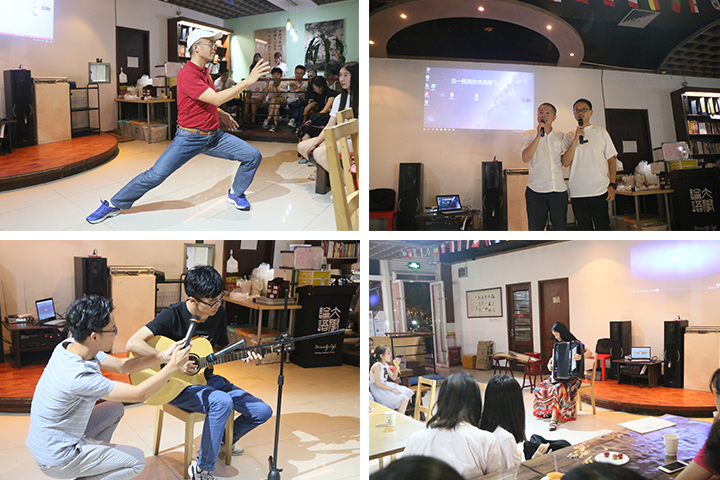 晚上在大学论语举办了师生联谊会,相声、手风琴、古筝、吉他弹唱展现了营员的多才多艺,《红日》、《青春大概》等歌曲节目唱出了营员对夏令营的喜爱和不舍。晚会中穿插的师生互动环节,将气氛推向了高潮。在同学们热情的邀请下,徐期勇教授表演了一段太极,许楠教授、金鹏副教授、吴华南老师也进行了演唱,晚会氛围融洽,进一步促进了师生关系,增进彼此了解。