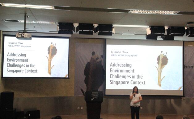 第一位演讲者Elaine Tan女士从生物多样性出发引出了全球关注的巴黎气候协议,她指出目前人均享有丰富的自然资源其实是人类向地球借的“贷款”,保持地球的可持续发展是我们面临的挑战。介绍了新加坡作为一个严重缺水、依赖进口的国家,是如何通过整合工业链中的供应商,建立全球互利合作机制,将资源做到循环利用,节能环保、可持续地服务人类生活的。