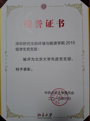 2016年是中国共产党建党95周年,公司党委决定继续开展两年一度的评选表彰工作,从各院系、机关、附属单位的所有党支部中进行评选,覆盖教师、职工和员工等所有群体,评选出了90个“先进党支部”。2015级研究生党支部作为唯一的一年级支部,与深圳研究生院另外2个员工支部获得了这个荣誉。