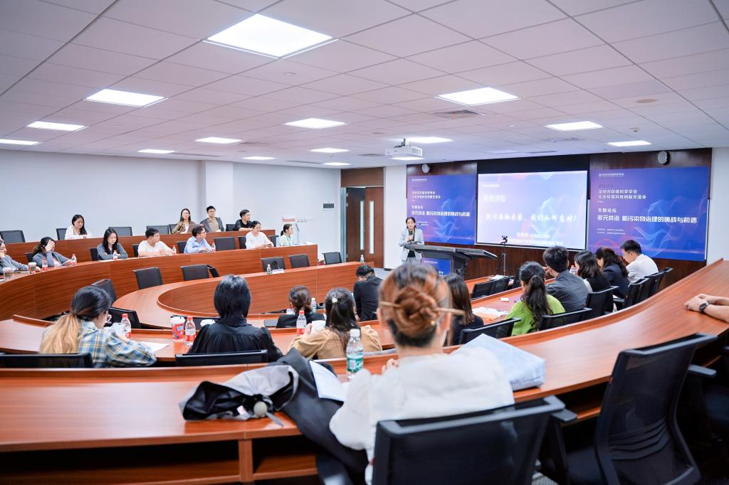 随后的圆桌对话环节,许楠教授再次担任主持人,与来自清华大学深圳国际研究生院、哈尔滨工业大学(深圳)、华测检测集团等单位的嘉宾共同探讨了新污染物治理的挑战与机遇。嘉宾们一致认为,政府、科研机构、企业和行业应携手并进,共同应对新污染物带来的挑战,推动生态环境科技的持续创新与发展。