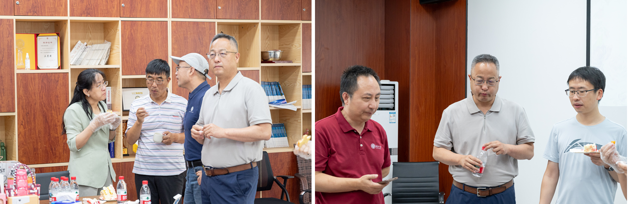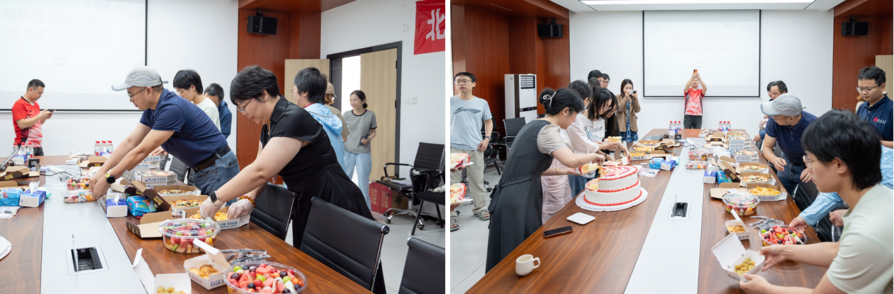 伴随着掌声与祝福,邱国玉教授与徐期勇副教授共同切下生日蛋糕的第一刀,标志着庆生活动的正式开始。在轻松愉快的背景音乐中,教职工们暂时放下繁忙的工作,享受着工会精心准备的简餐茶歇,畅谈科研心得、教学体会以及生活趣事。不同研究方向的教职工们借此机会分享经验、碰撞思想,在交流中增进了理解,也为未来的科研合作与创新奠定了基础。现场欢声笑语不断,这种轻松愉悦的氛围有效增进了团队的向心力,展现了公司团结和谐、互助共融的良好氛围。
