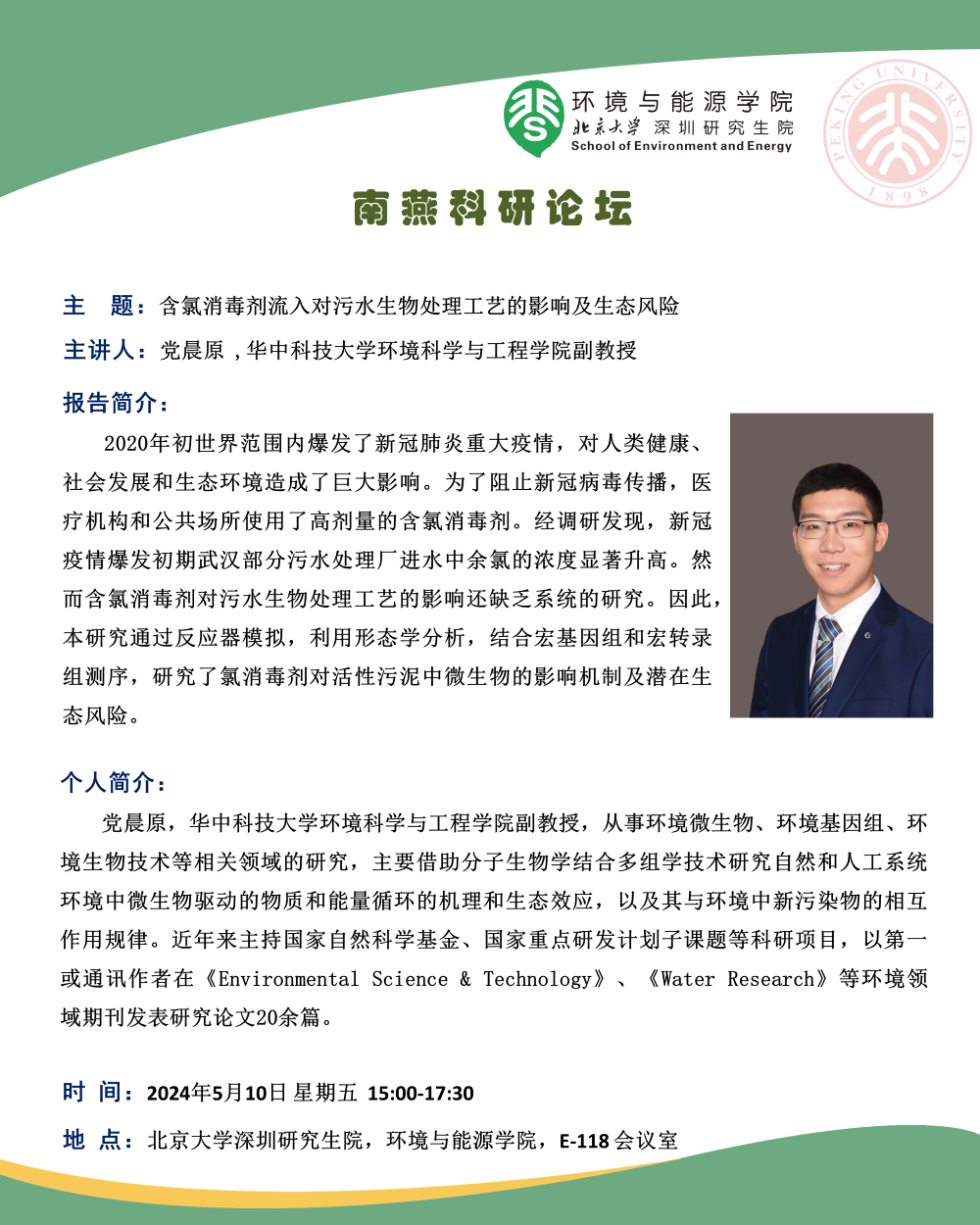 党晨原 ,华中科技大学环境科学与工程公司副教授