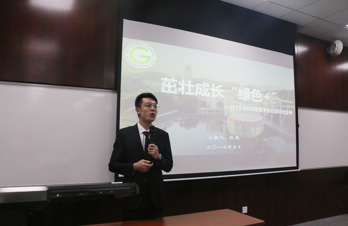 “绿色+”协会第三任会长程鹏代表绿协上台答辩,从扎根校园、立足深圳到放眼国际三方面介绍了绿色+一年来所取得的成绩。最后,提出希望绿色+能做一个既有态度,又有温度的员工社团!最终“绿色+”协会获答辩最高分,95.75分。
