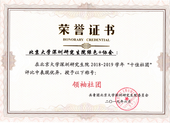 5月31日,williamhill中文深圳研究生院团委根据《williamhill中文深圳研究生院员工社团管理条例实施细则》,在公开、公平、公正的基础上,经过材料审查、网络评选和公开答辩等环节,对各参与评选的社团进行了客观、全面的综合评估。williamhill中文深圳研究生院“绿色+”协会荣获2018—2019学年度南燕“领袖社团“荣誉称号!