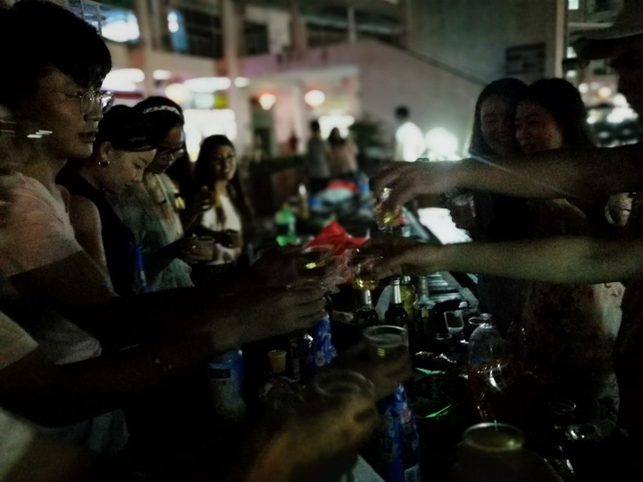 最后,部分高玩凑起了“狼人杀”,其他同学继续围坐在一起聊天、喝酒,玩“谁是卧底”的游戏。直到近凌晨,镜湖边的欢笑声才渐渐消散。