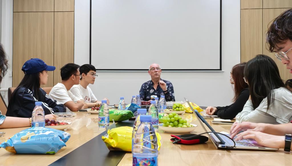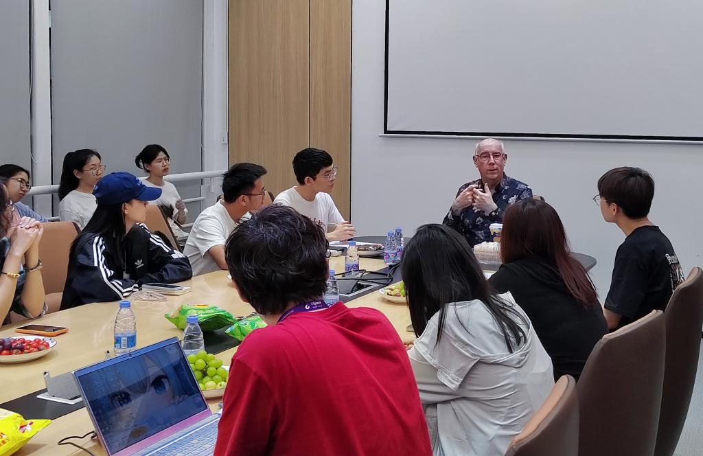 在互动交流环节,博士后张超同学就海浪流体力学的边界问题,主动与博思威克教授开展了讨论。教授认为这是一个非常有趣的技术问题,并通过理论阐释和案例分析进行详细回答。博士生董子航同学咨询了出国留学方面的问题。教授饶有兴致地回顾了其求学年代的职工赴国外求学的原因,分析了出国留学可能会面对的情景,并就北老员工在选择是否留学时应考虑到的因素提出了有益建议。环能公司24级硕士生刘康桢、崔红涛等同学,就攻读博士、湍流研究等话题向教授请教,教授一一耐心作出解答。