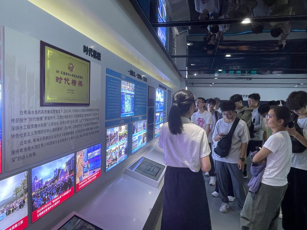 同学们了解到,在粤海水务的高质量运营管理下,东深供水工程建设者群体于2021年被中共中央宣传部授予“时代楷模”荣誉称号,工程也被命名为“全国爱国主义教育基地”。2023年,东深供水工程荣膺水利部“人民治水·百年功绩”治水工程,入选广东省“习近平新时代中国特色社会主义思想研究中心调研基地”。2024年,工程被评为广东省首批水情教育基地。