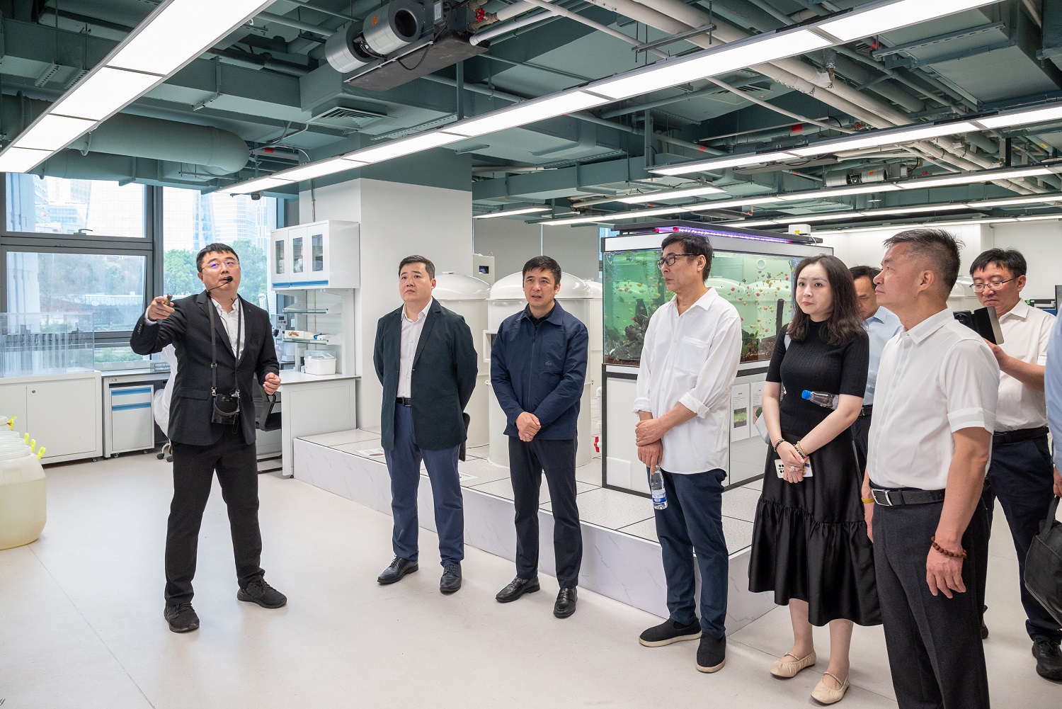 谈及成果转化方面,要求实验室全力整合集团力量,为实验室产品对接应用场景,确保产品顺利落地。尤其提及当前市场污水处理板块,规模大但成本较高,污水处理技术的应用优化将是实验室未来关注重点;同时,面对城市雨污水处理趋近饱和的情况,实验室自主研发的红菌技术也需探索更多转化场景,拓展应用空间。