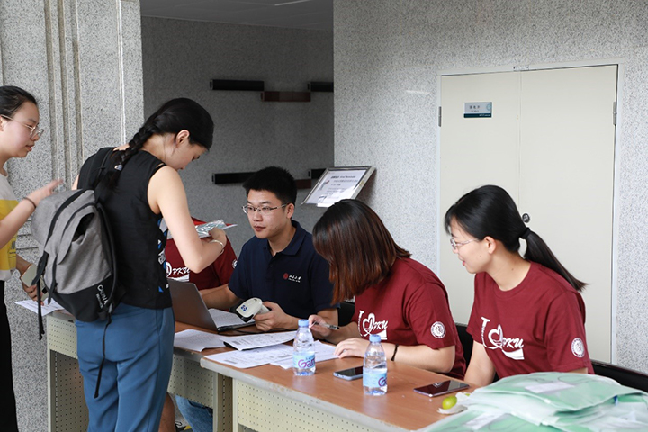 阵阵雨水带走了闷热的暑气,来报道的环能新生也体会了一把“空山新雨后”。